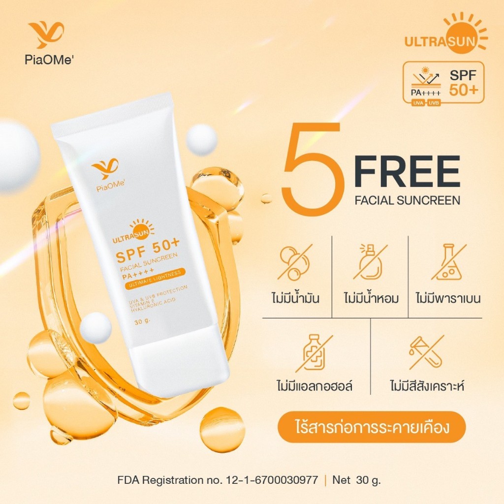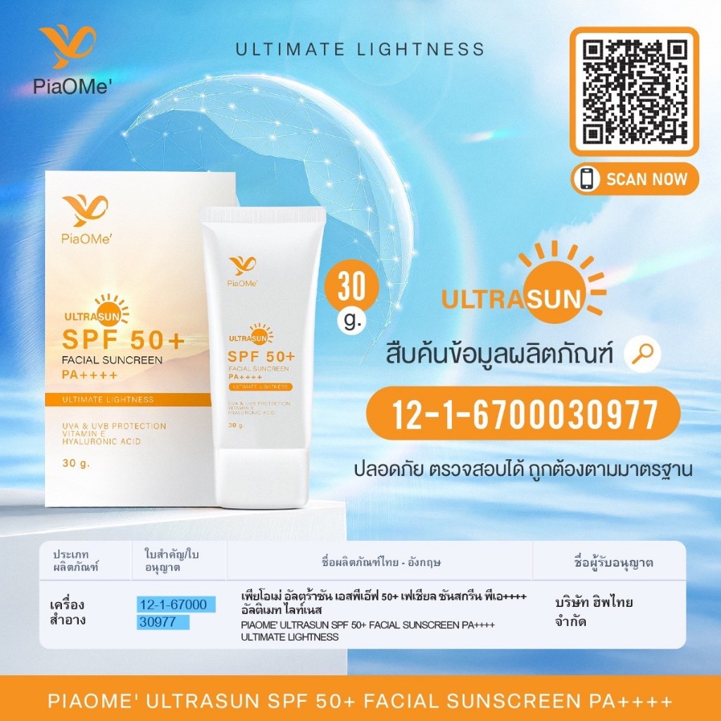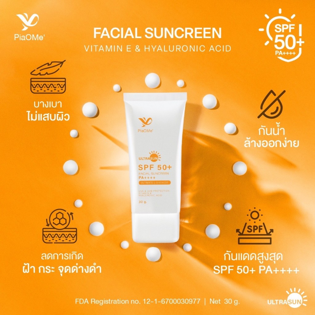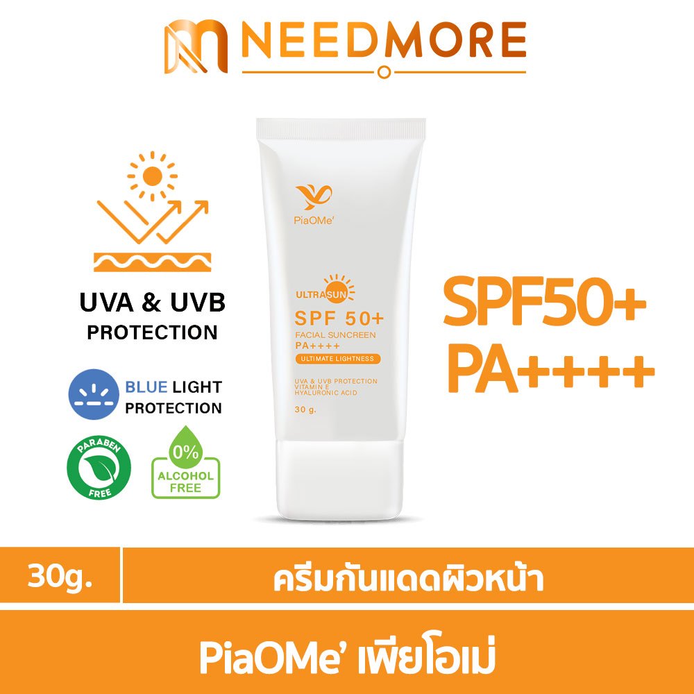 PiaOMe' กันแดดหน้าเนียน SPF50+ PA++++ สูตรผิวแพ้ง่าย หน้าไม่ลอย คุมมัน ไม่อุดตัน บำรุงผิวในตัว 30g.