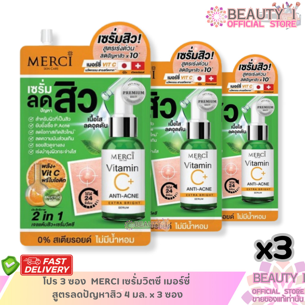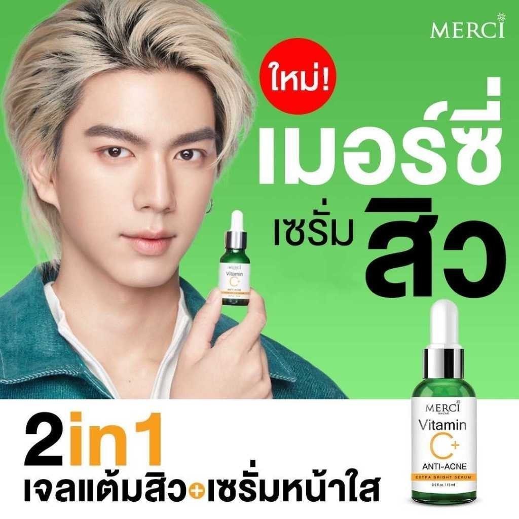 โปร 3 ซอง MERCI เซรั่มวิตซี เมอร์ซี่ สูตรลดปัญหาสิว 4 มล. x 3 ซอง