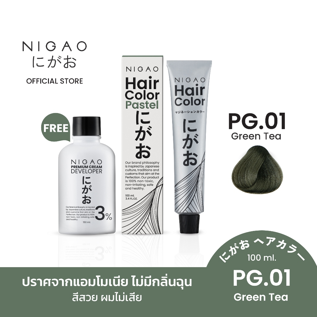 [ฟรี Developer] NIGAO Hair Color PG.01 Green Tea | นิกาโอะ ครีมเปลี่ยนสีผม สีพาสเทล สีย้อมผม เขียว กรีนที 100 mL