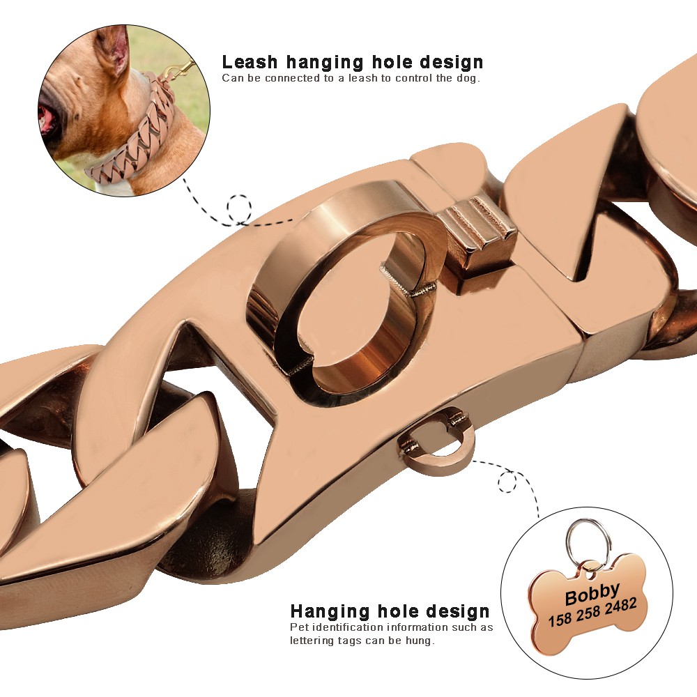 Luxury Dog Chain Collar Large Dogs Pet Show Chain Stainless Steel Heavy Duty Gold Silver Black Rose Gold