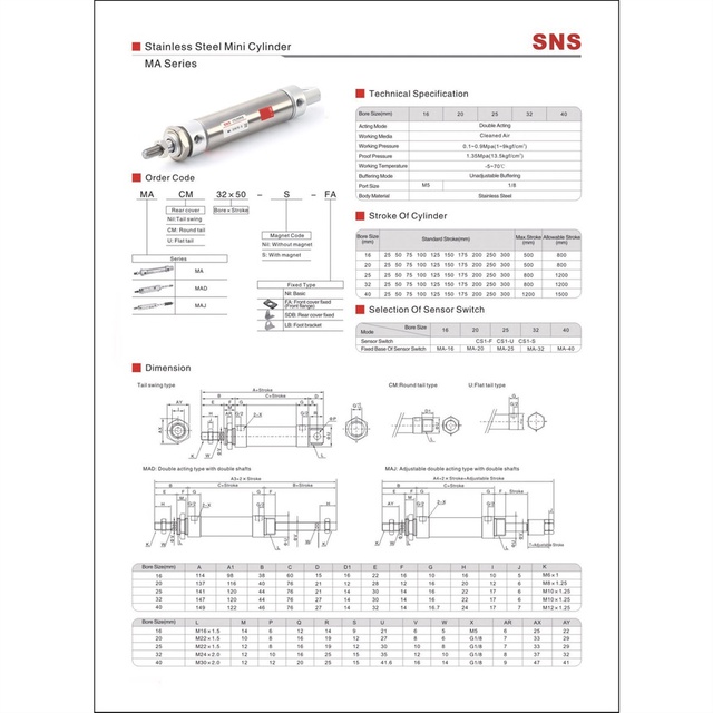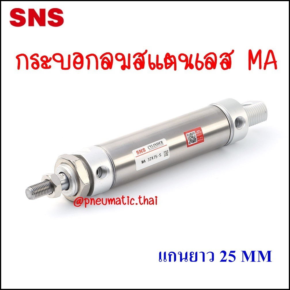 MA25 กระบอกลมสแตนเลส ขนาดเล็ก MA Stainless Steel Mini Cylinder ขนาดความโตกระบอก Ø25mm ความยาวตั่งแต่ 25-300mm