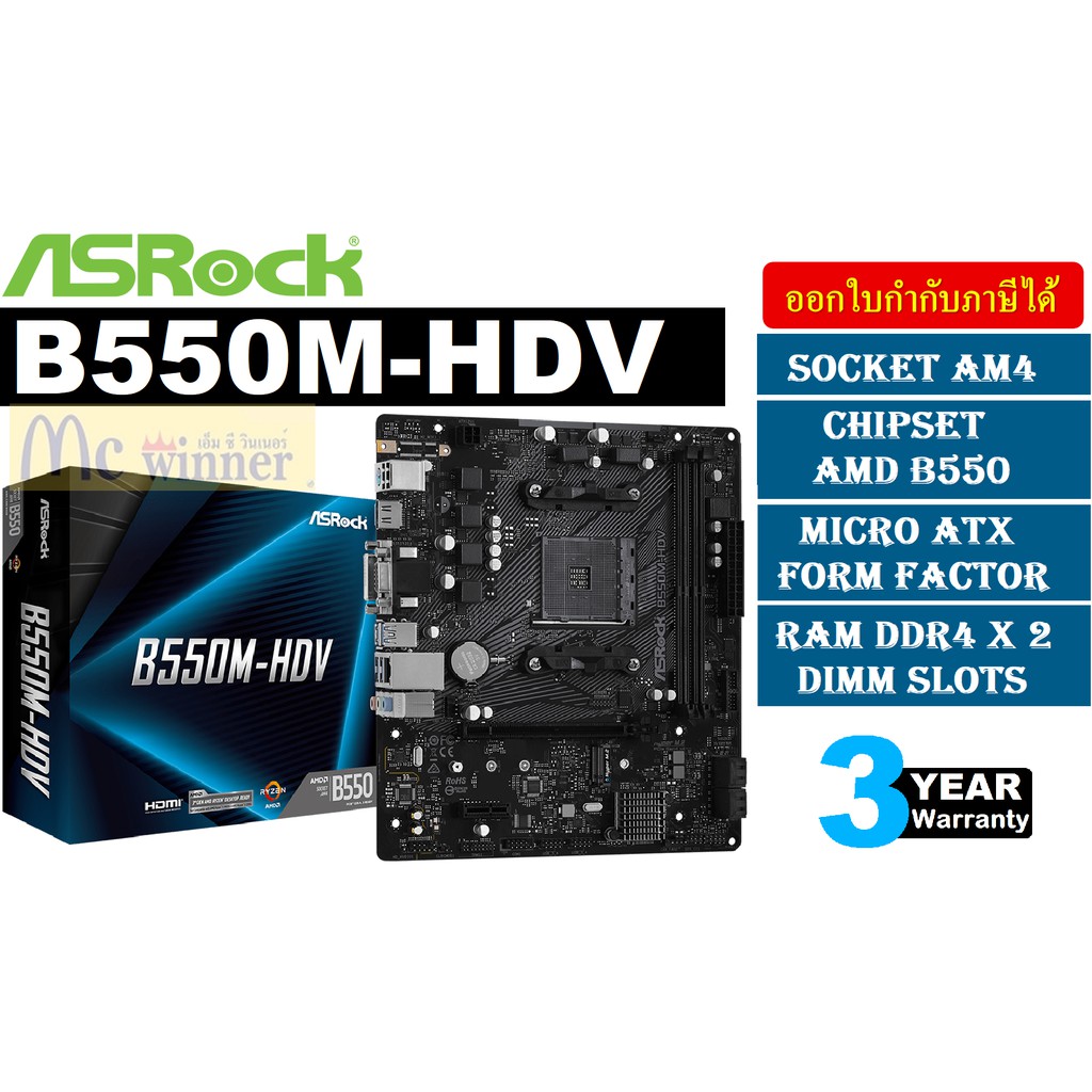 MAINBOARD (เ มนบอร์ด) AM4 ASROCK B550M HDV ประกัน 3 ปี