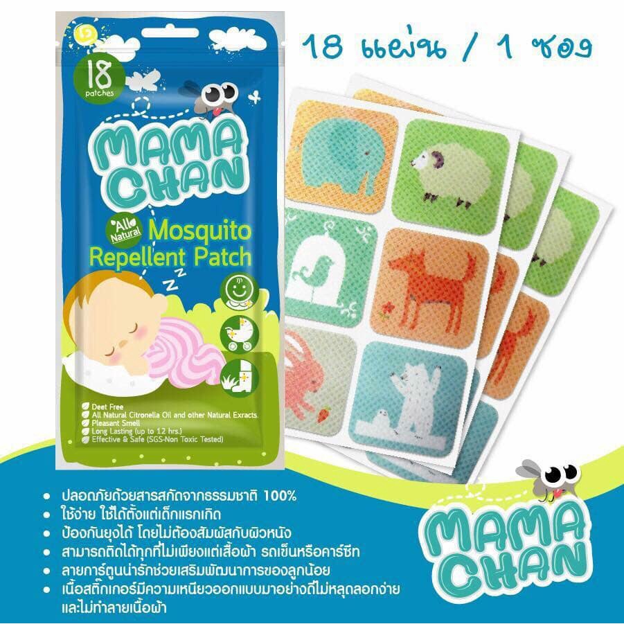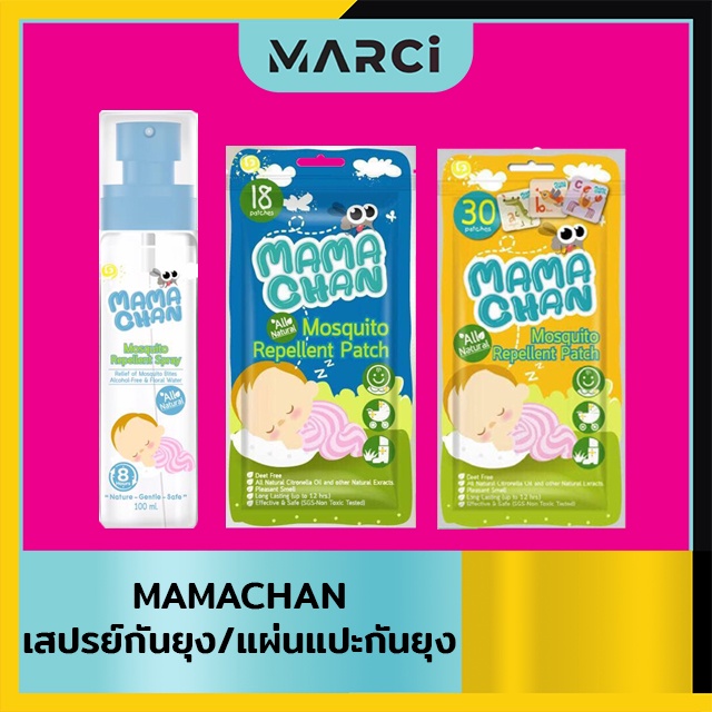 MAMACHAN มาม่ะจัง เสปรย์กันยุง/แผ่นแปะกันยุงออร์แกนิค ซองสีเหลือง (1แพ็ค/30ชิ้น)/ซองสีฟ้า (1แพ็ค/18ชิ้น )