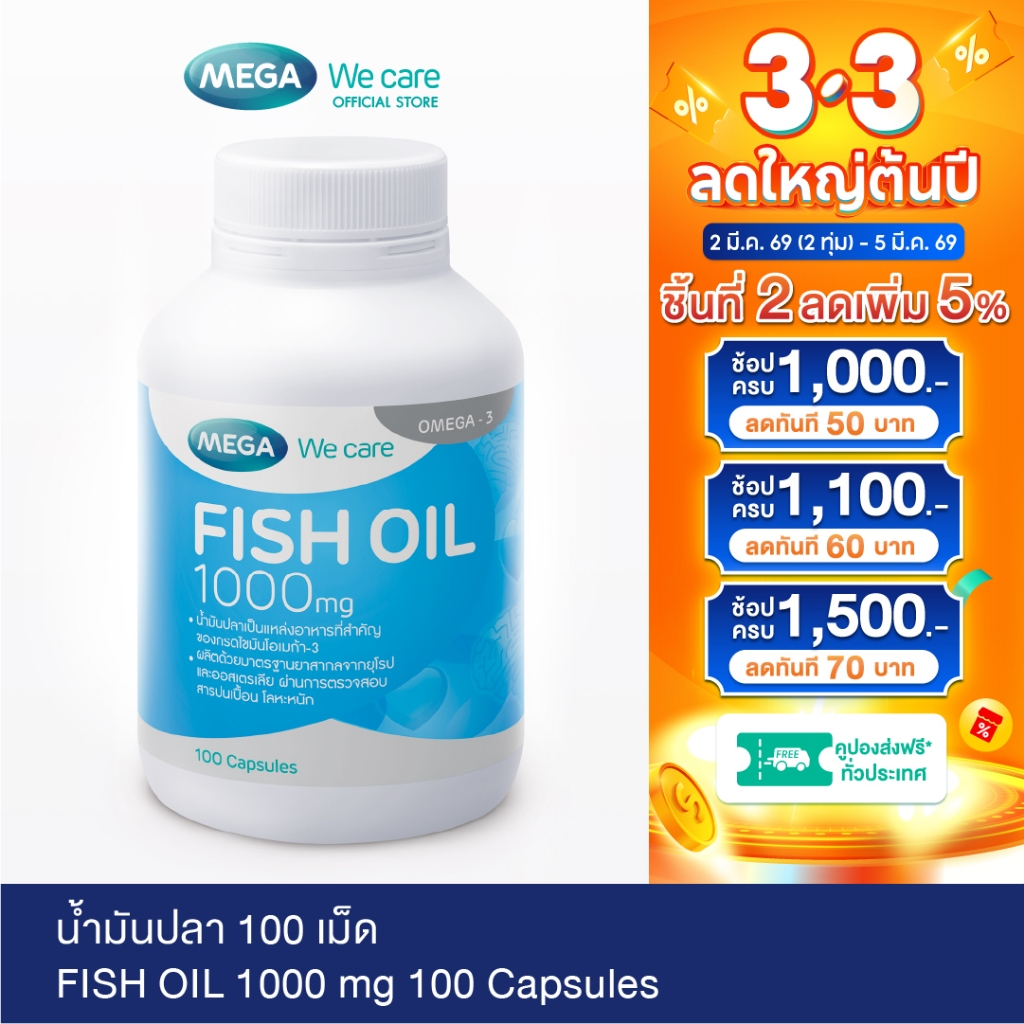 MEGA We care เมก้าวีแคร์ FISH OIL 1000 MG. (100 's) น้ำมันปลา 1000 มก. 100 เม็ด (F0100M)