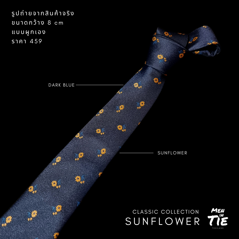 MEN IN TIE เนคไทแบบผูกเองลายดอกไม้ หน้ากว้าง 8cm รุ่น Sunflower