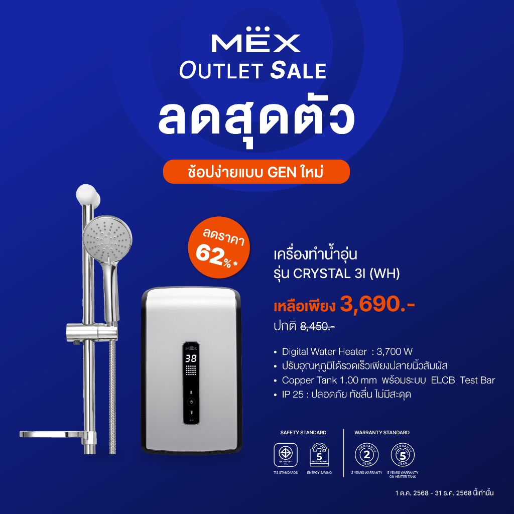 MEX เครื่องทำน้ำอุ่น 3700W : รุ่น CRYSTAL 3I (WH) : สีขาว