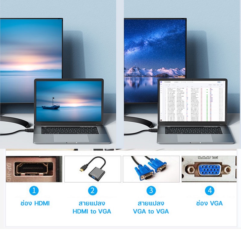 MGBB สายแปลง HDMI to VGA Cable สายจาก HDMIออกVGA สาย HDMI Cable Converter Adapter HD1080p Cable สายแปลง HDMI to VGA #T3