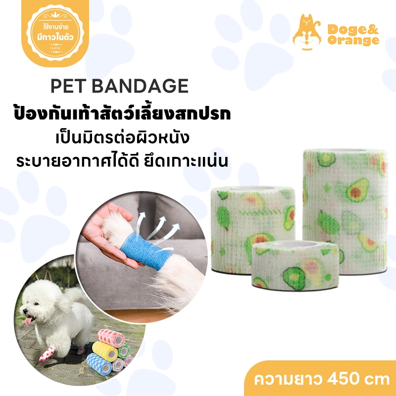 Doge&Orange ผ้าพันแผล เทปพันเท้าสัตว์เลี้ยงแบบใช้ครั้งเดียว สำหรับสัตว์เลี้ยง กันฝุ่น กันเลีย ผ้ายืดหยุ่น MIP225