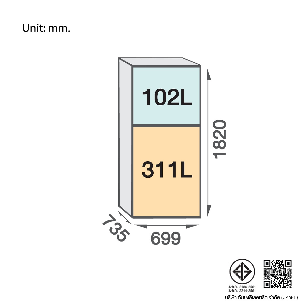 MITSUBISHI ELECTRIC ตู้เย็น 2 ประตู ขนาด 14.6 คิว INVERTER (MR-FS45EY) **จัดส่งสินค้าฟรีเฉพาะกรุงเทพเท่านั้น**