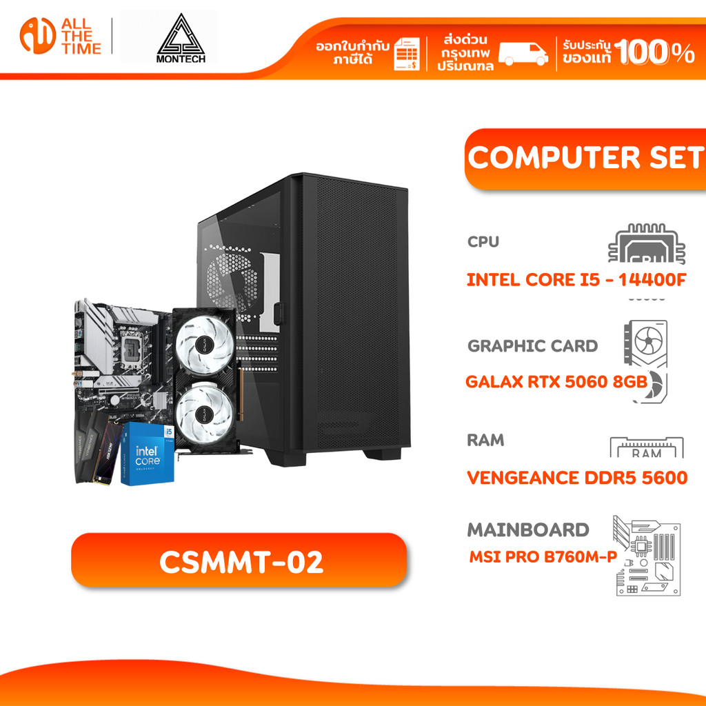 MONTECH SET 2 คอมประกอบ INTEL CORE I5 - 14400F/RTX 5060 8GB/B760M-P/32GB DDR5 5600MHz (CSMMT-02)
