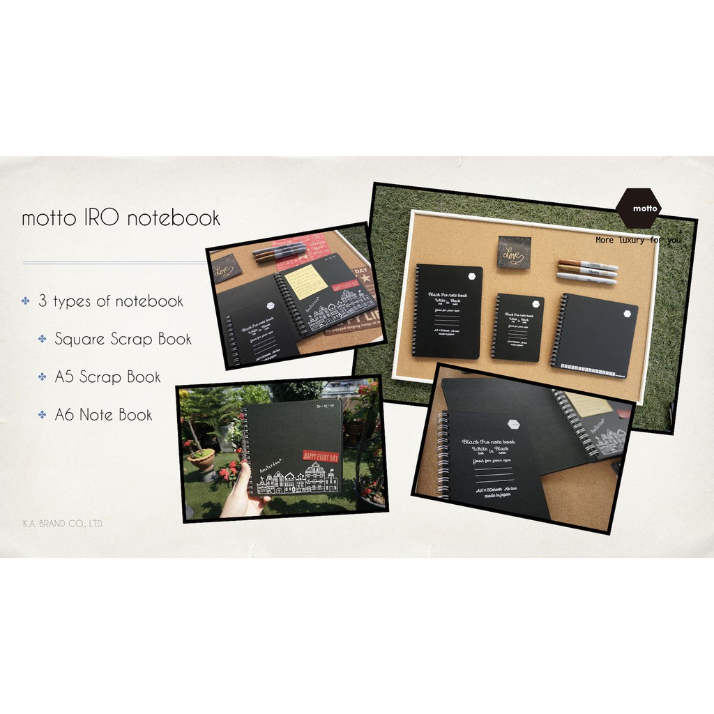 MOTTO สมุดโน๊ตกระดาษดำ Scrapbook ตกแต่ง DIY นำเข้าจากญี่ปุ่น