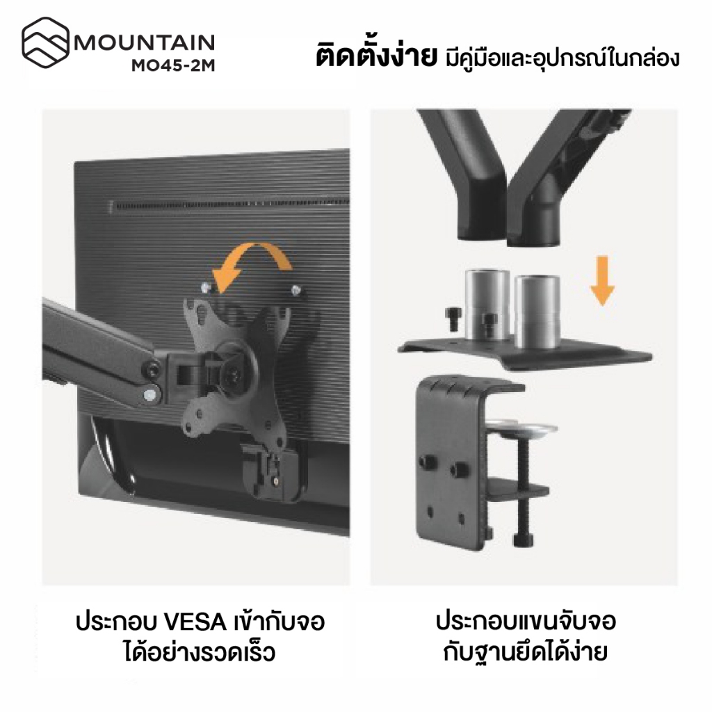 MOUNTAIN ขาตั้งจอคอม ขาตั้งจอมอนิเตอร์ 2 จ อ รุ่น MO45-2M Minimalist Spring-Assisted Dual Monitor Arm