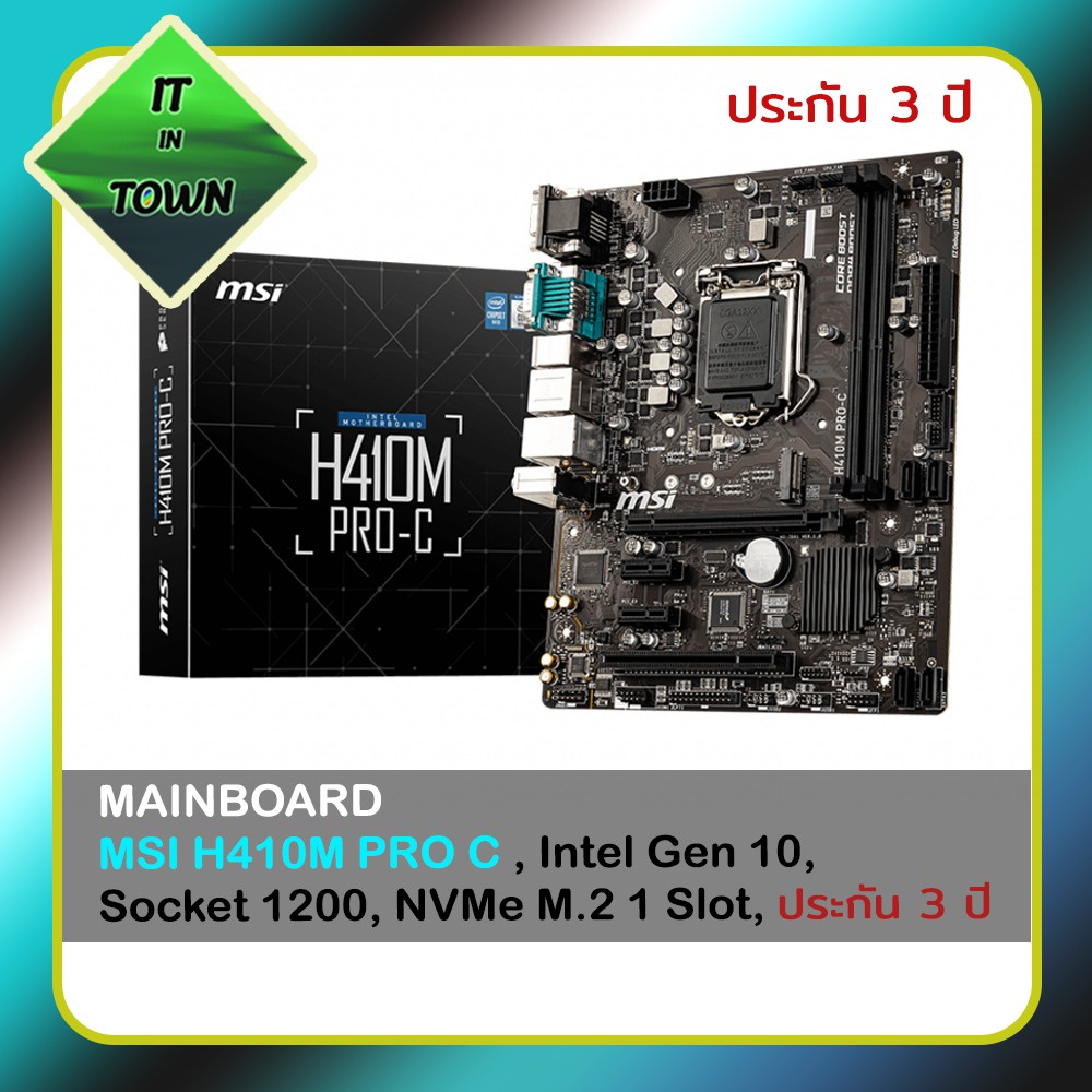 MSI H410M-PRO C, H410M-PRO VH, H410M S2 V3 Intel Gen 10, Socket 1200, NVMe M.2 1 Slot, ประกัน 3 ปี (เมนบอร์ด)