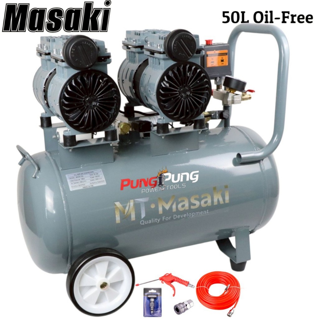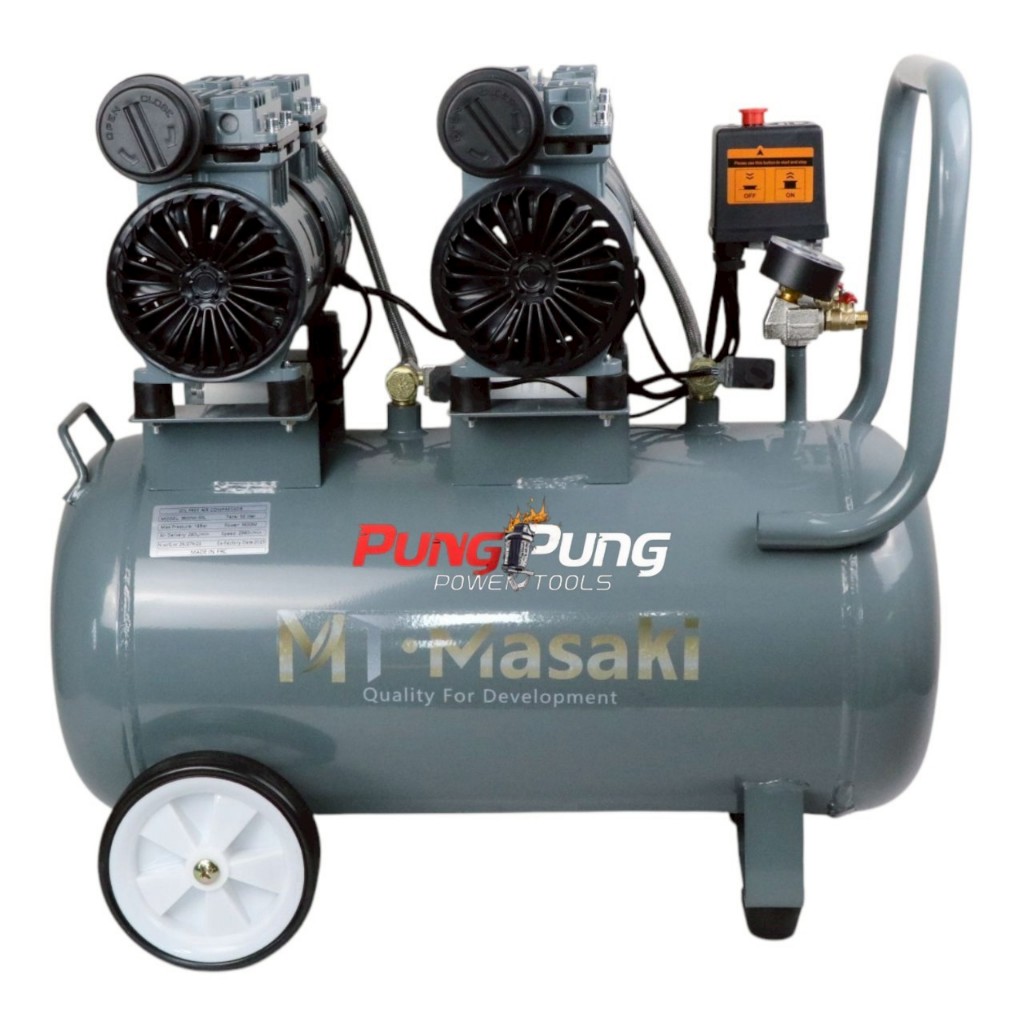 MT Masaki ปั้มลม OIL FREE 50 ลิตร 2 มอเตอร์ ปั้มลมเก็บเสียง ปั้มลมออยฟรี เสียงเงีบย 3600W 4HP ปั้มลมไฟฟ้า ปั้มลมรถยนต์
