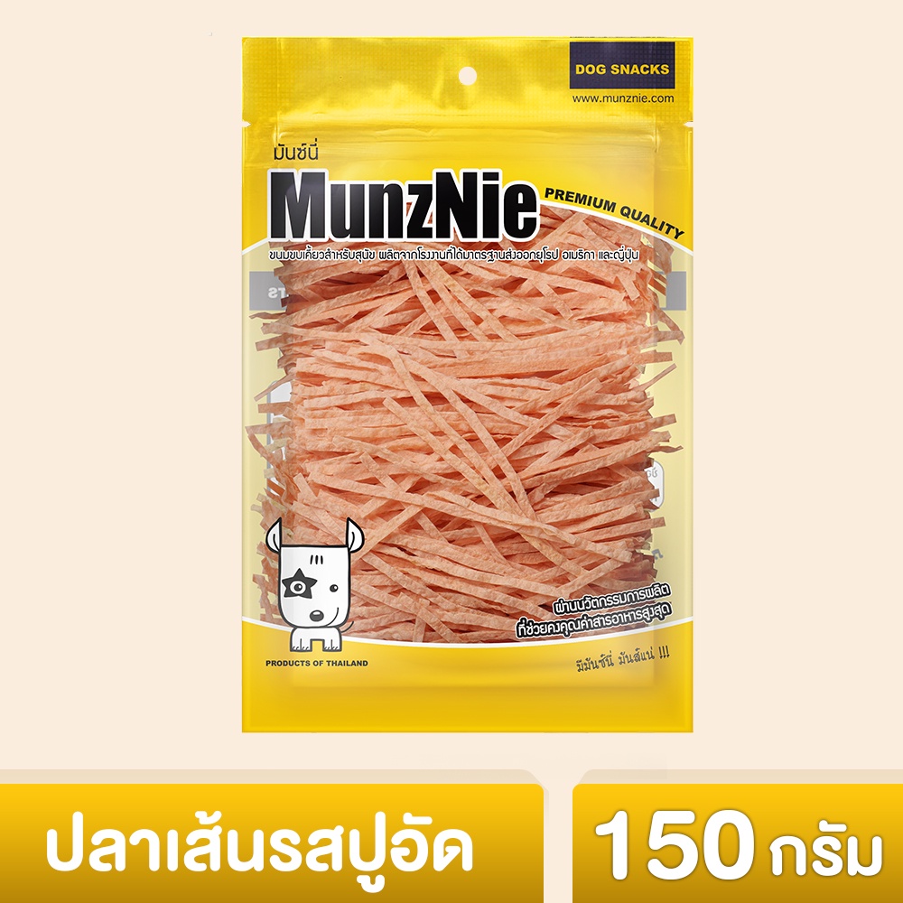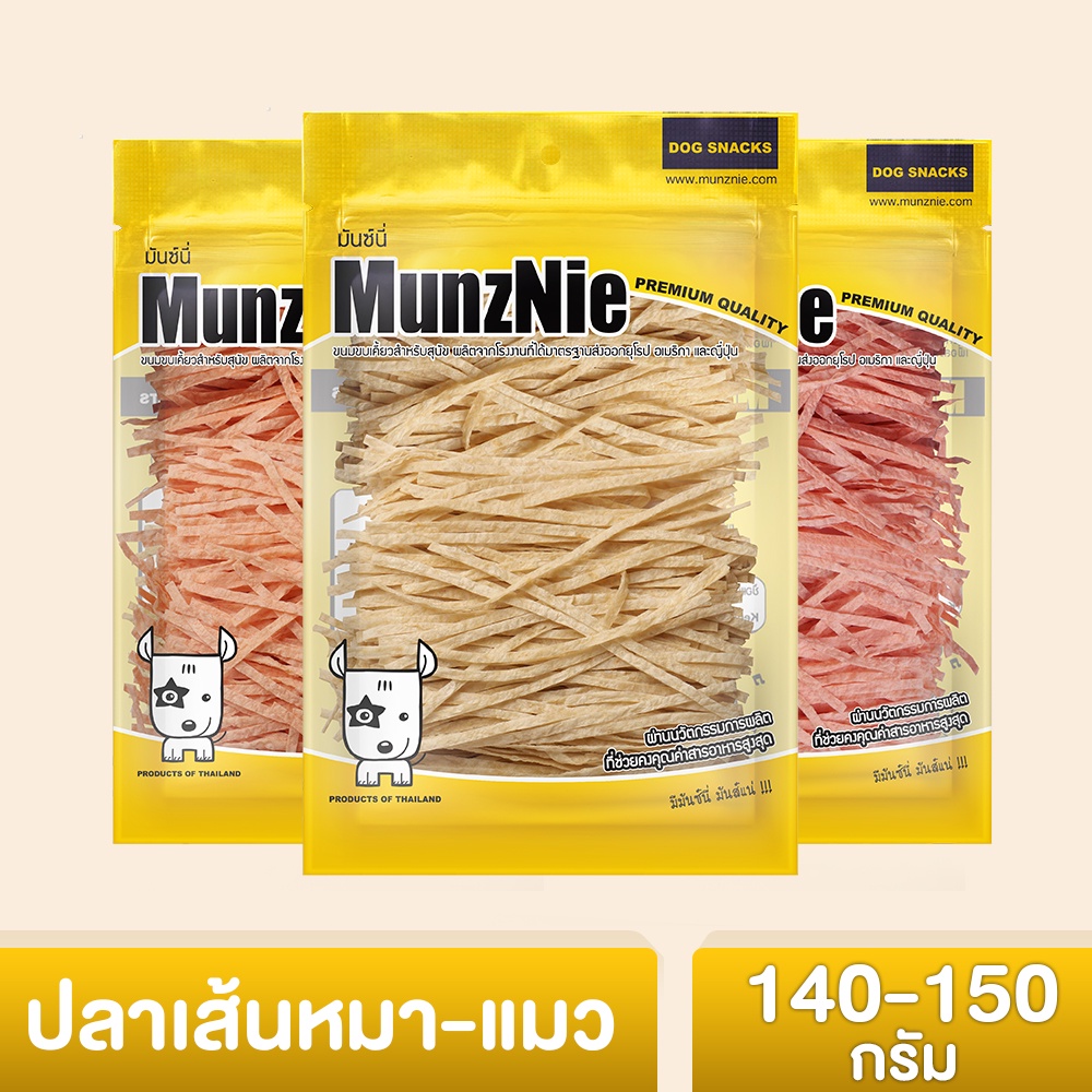 MUNZNIE ขนมขบเคี้ยวสำหรับสุนัข-แมว ปลาเส้นหมา ปลาเส้นแมว 3 รสชาติให้เลือกสรร บรรจุขนาด 140-150g (1ซอง)