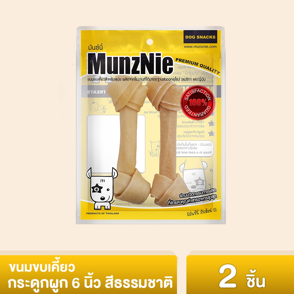 MUNZNIE ขนมสุนัขมันซ์นี่ กระดูกผูกสีธรรมชาติ 6 นิ้ว||MS071