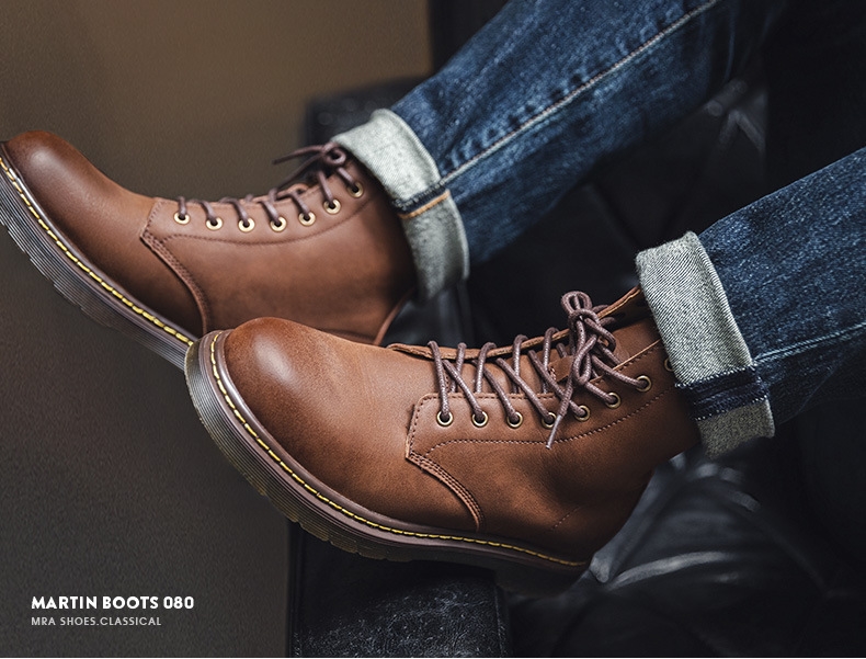 MRA casual high-quality men's high top British style leather shoes retro workwear boots