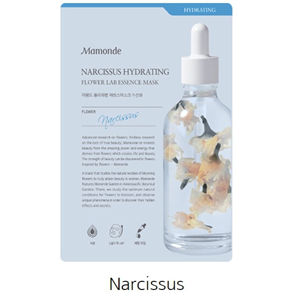 Mamonde Flower Lab Essence Mask sheet Hibiscus Deep, Rose Moisturizing, Narcissus, Camellia, Evening, Magnolia, Ampoule