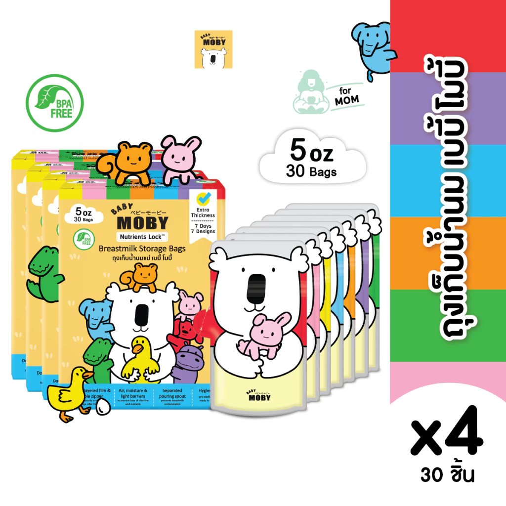 Baby Moby ถุงเก็บน้ำนมแม่ 5 ออนซ์ (4 กล่อง) 30 ถุง/แพ็ค