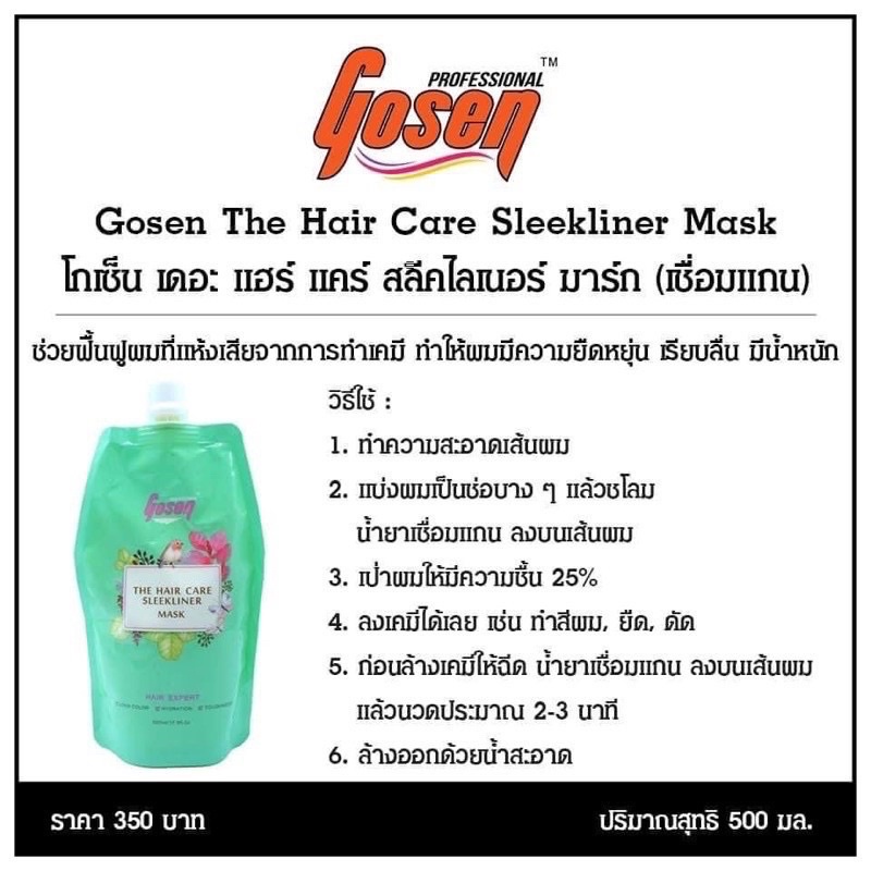 เชื่อมแกน Gosen The Hair Care Sleekliner Mask 500ml โกเซ็น เดอะ แฮร์ แคร์ สลีคไลเนอร์ มาร์ก