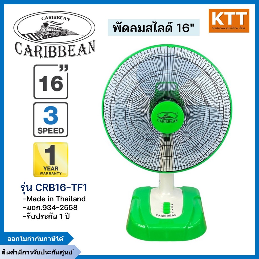พัดลมตั้งโต๊ะ คาริเบียน รุ่น CRB16-TF1 ขนาด 16 นิ้ว สีเขียว พร้อมส่ง
