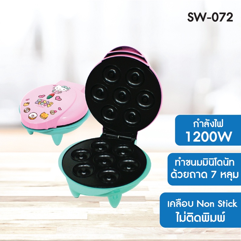Hello Kitty เครื่องทำขนมมินิโดนัทลายคิตตี้ สินค้าลิขสิทธิ์แท้ รุ่น SW-072 | ทำโดนัทจิ๋ว 7 ชิ้น | Non Stick | 1200W