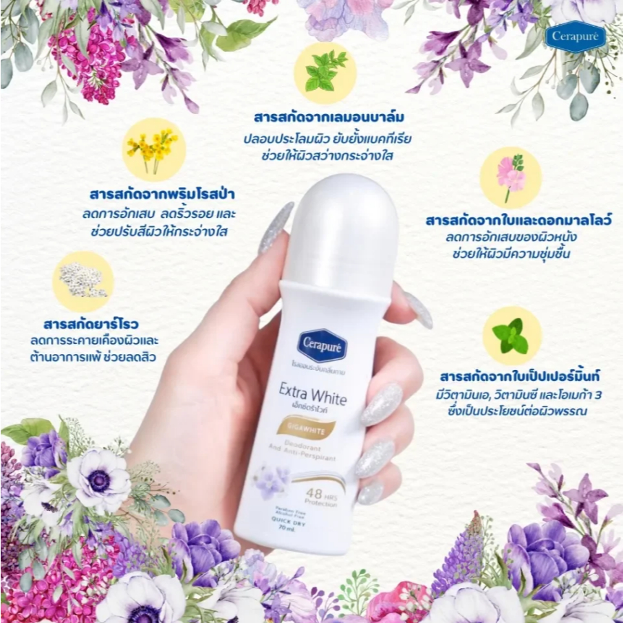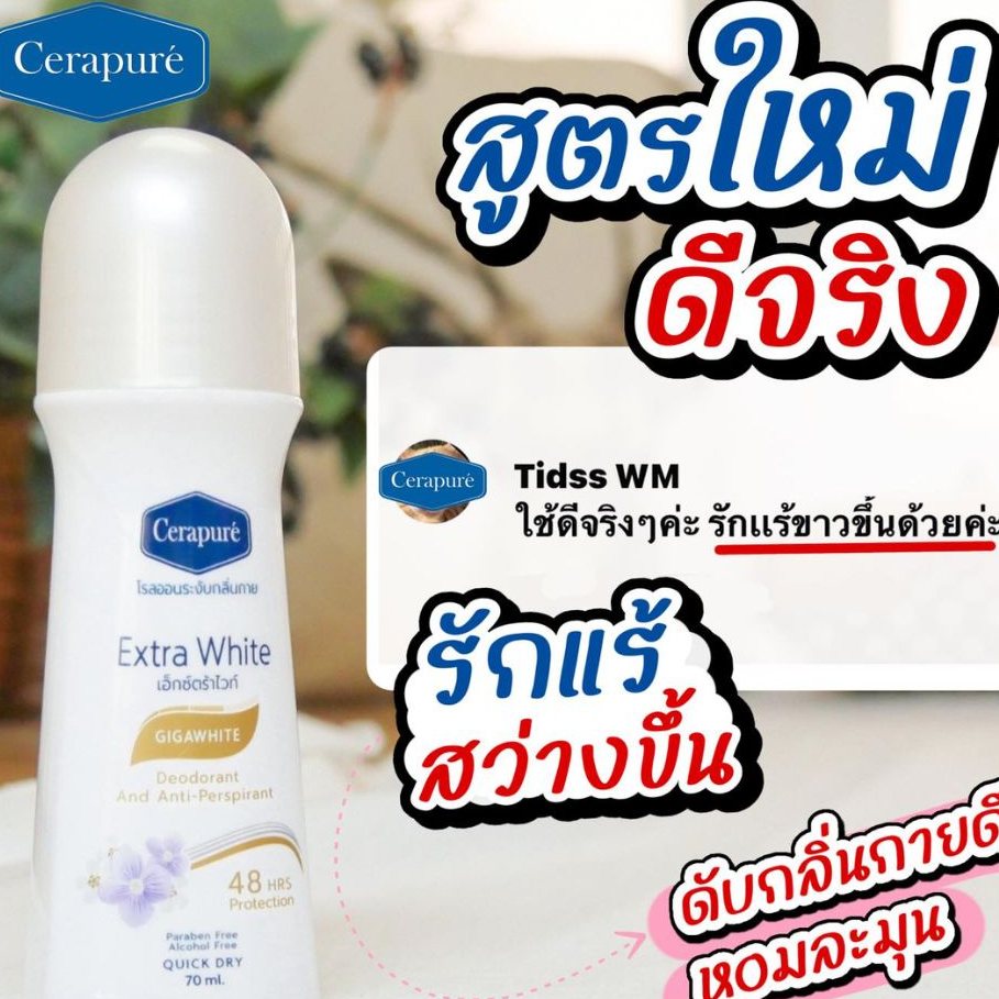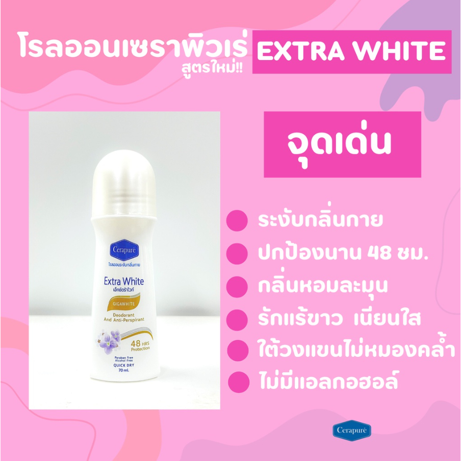 CERAPURE Roll On Extra White โรลออน เอ็กซ์ตร้าไวท์ สูตรใหม่ ระงับกลิ่นกาย (70ml.)