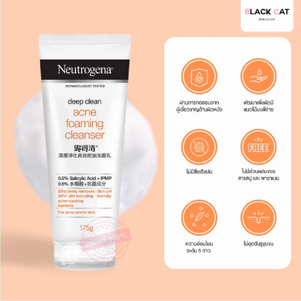 Neutrogena Deep Clean Cleanser นูโทรจีนา ดีพ คลีน โฟมมิ่ง คลีนเซอร์ โฟม วิปโฟม เจลล้างหน้า โฟมลดสิว คุมมันผิวใส