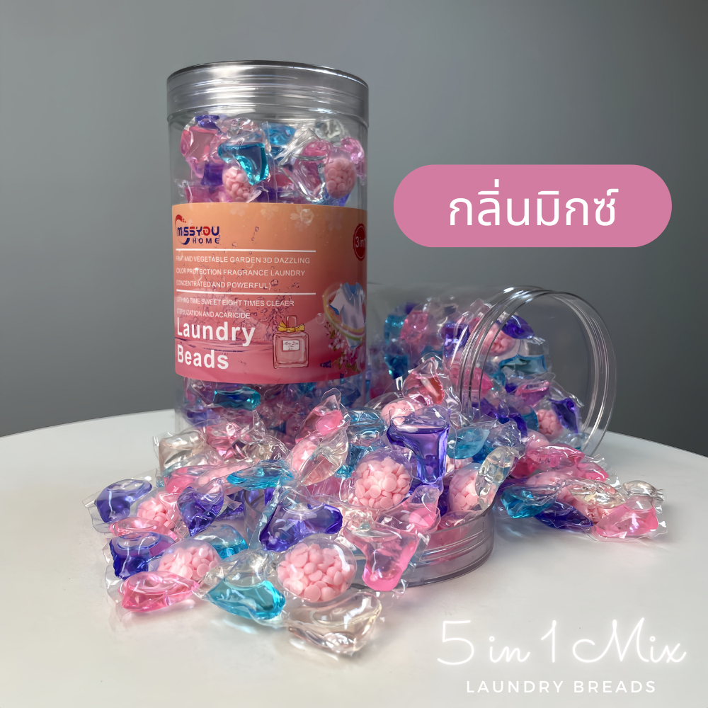 5 in 1 เจลบอลซักผ้า กล่องละ 40 เม็ด รวมน ้ำยาซักผ้า น้ำยาปรับผ้านุ่ม กลิ่นหอมมาก MISSYOUHOME