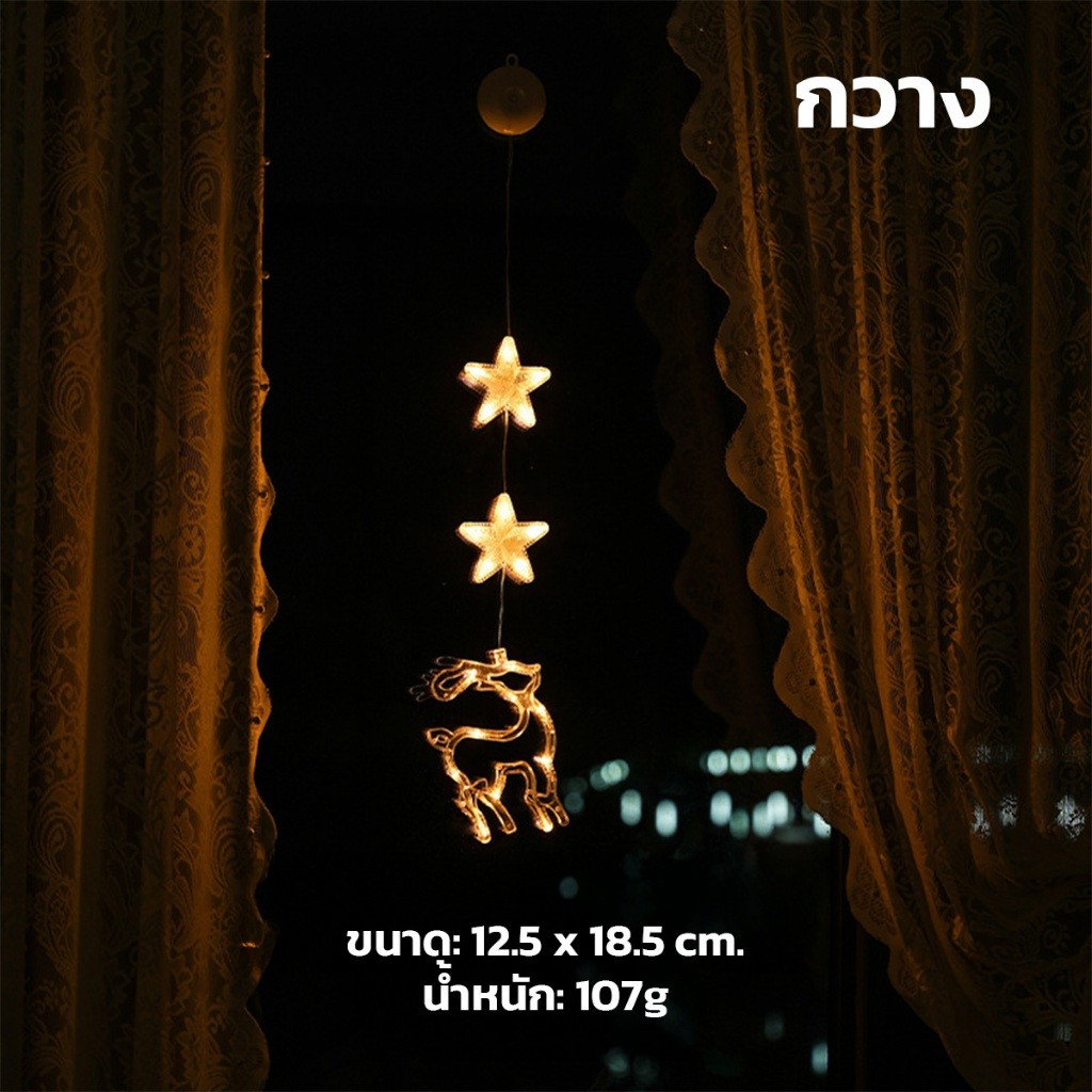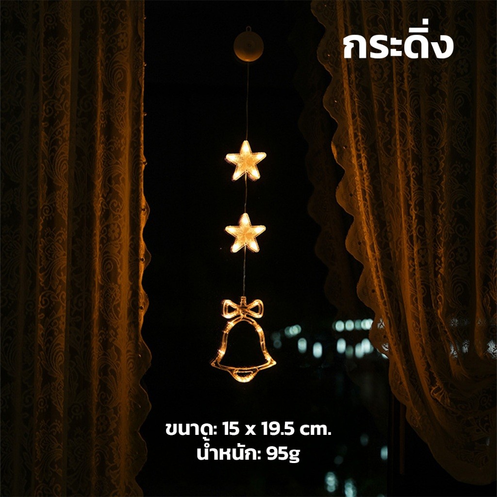 ไฟประดับเทศกาลคริสต์มาส LED แบบดูดสูญญากาศ มีช่องใส่แบตเตอรี่ แสงวอร์ม