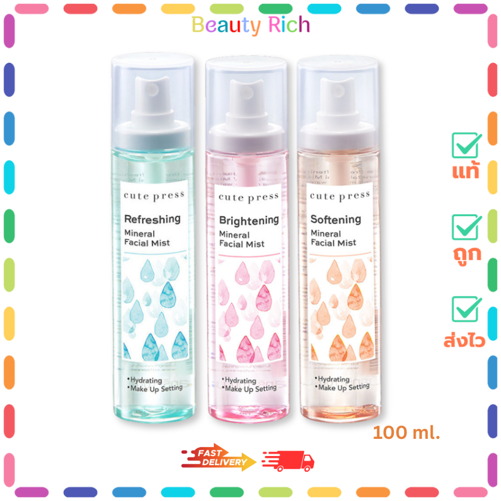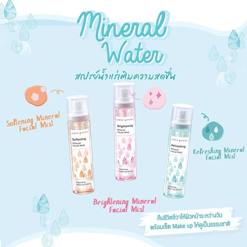 (1 ขวด) Cute Press Mineral Facial Mist คิวท์เพรส สเปรย์น้ำแร่บำรุงผิวหน้า (100 ml.)
