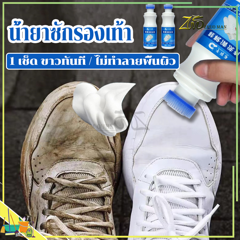 น้ํายาเช็ดรองเท้า ทำความสะอาดรองเท้า ขจัดคราบสิ่งสกปรก ไม่ทำลายพื้นผิว ไม่ต้องล้างน้ำ เพียง กด ขัด เช็ด ง่าย ๆ ใน1นาที