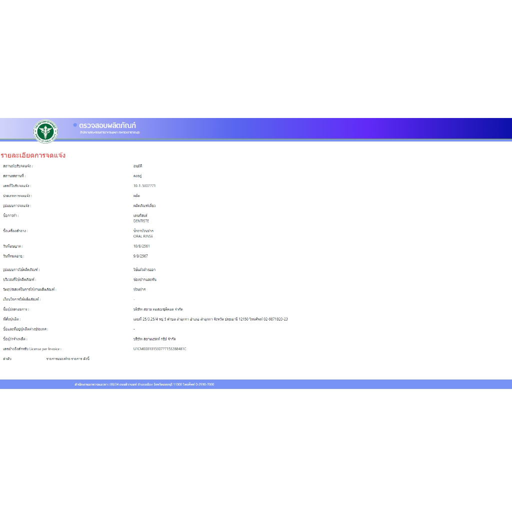Dentiste' Oral Rinse เดนทิสเต้ น้ำยาบ้วนปาก ลดกลิ่นปากและแบคทีเรีย ขนาด 50มล. [1 ขวด] BB 5105
