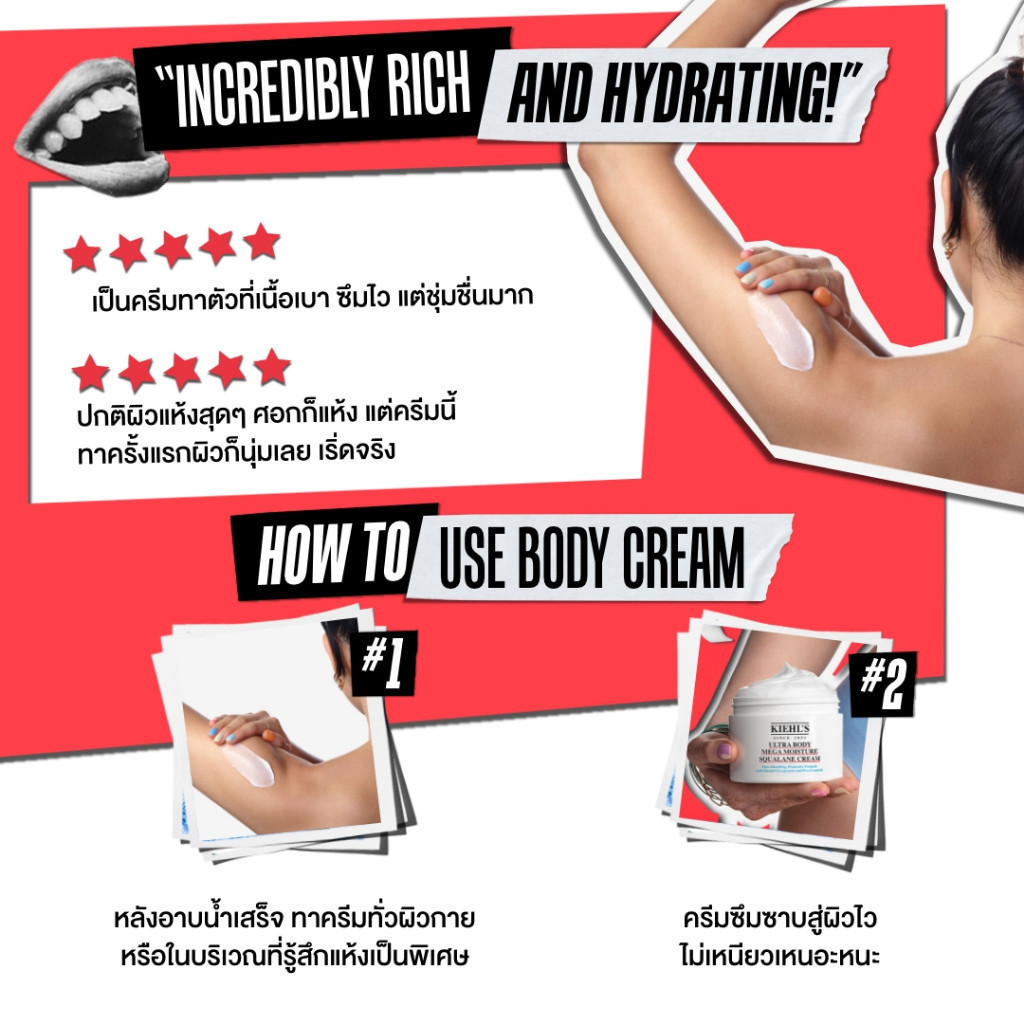 KIEHL'S ULTRA BODY MEGA MOISTURE SQUALANE CREAM ครีมบํารุงผิวกายสูตรเข้มข้น ซึมไว สบายผิว