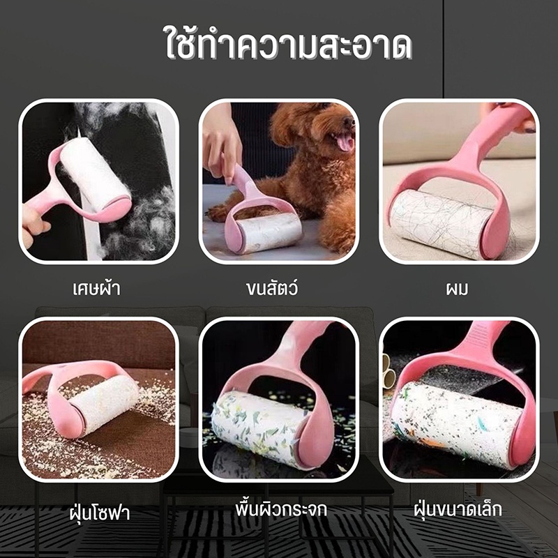 ลูกกลิ้งกำจัดขน ลูกกลิ้งทำความสะอาด ลูกกลิ้งเก็บฝุ่นและขนบนเสื้อผ้า ขจัดขนแมวและขนสุนัข ลูกปาที่ชัดเจน ชุดสีชม 4สี