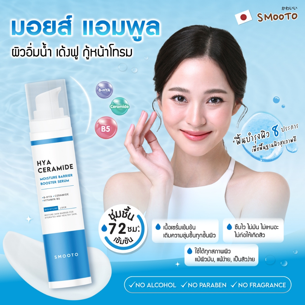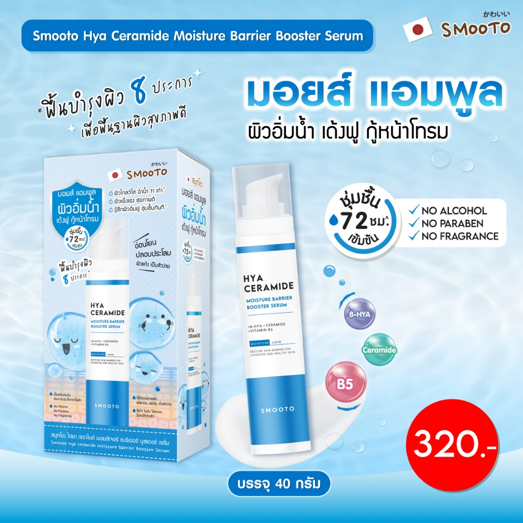 (1 ขวด) SMOOTO สมูทโตะ ไฮยา เซราไมด์ มอยส์เจอร์ แบริเออร์ บูสเตอร์ เซรั่ม (40 กรัม)
