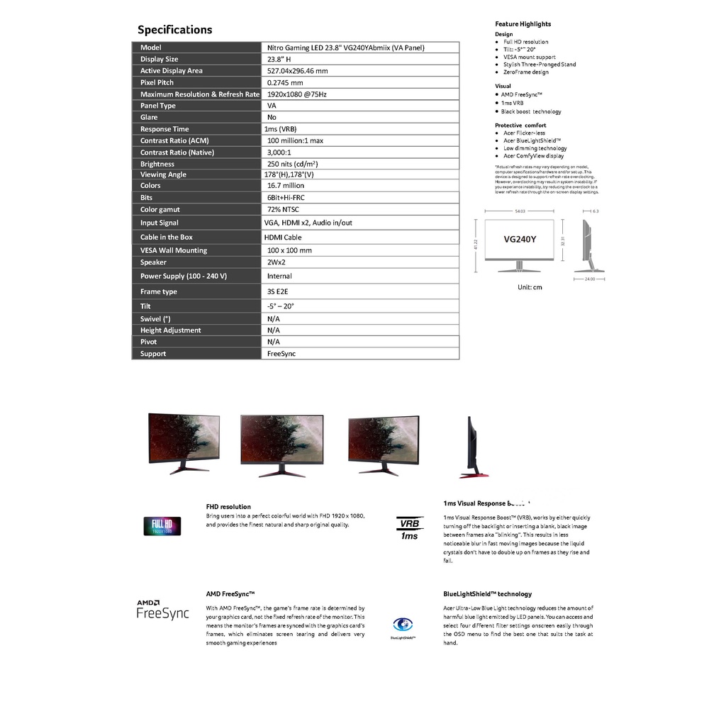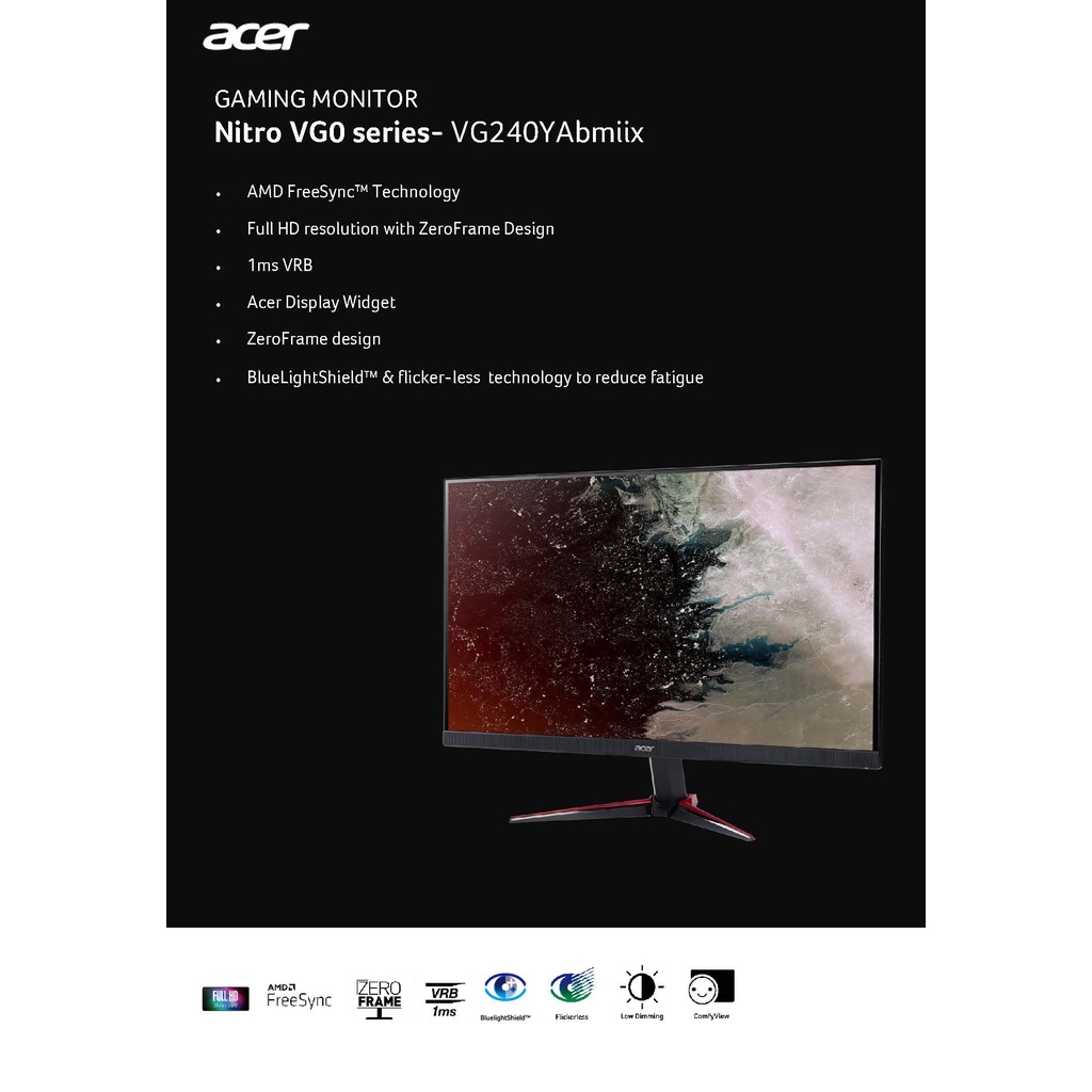 ACER Monitor รุ่น VG240YAbmiix 23.8" VA 75Hz (1ms, HDMI, VGA, SPK) ประกันศูนย์ 3 ปี