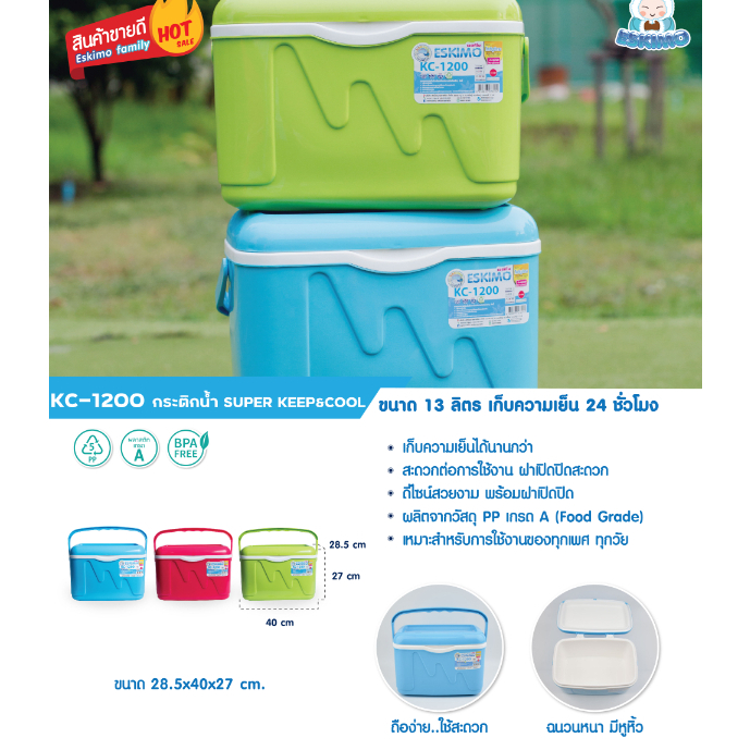 กระติกน้ำทรงสี่เหลี่ยมเอสกิโม ขนาด 12 ลิตร ESKIMO KC-1200