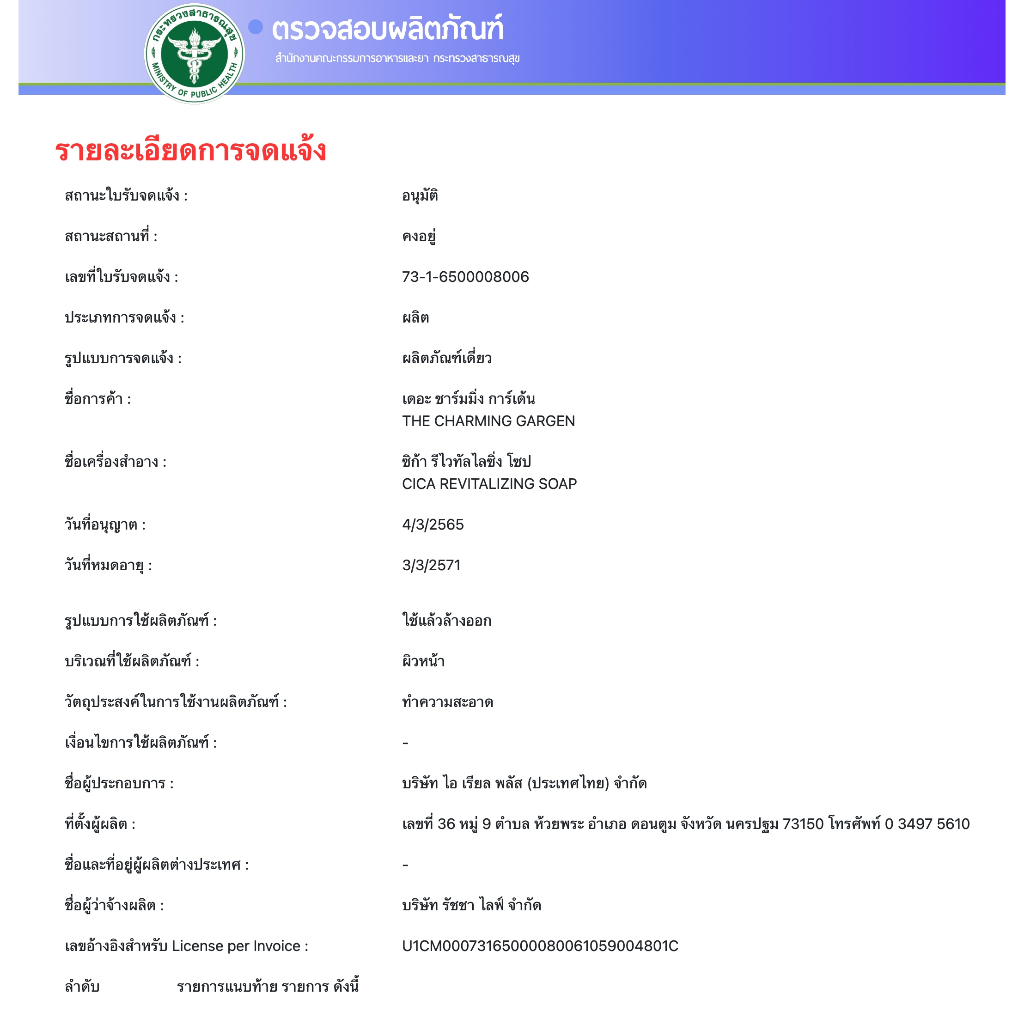 สบู่ใบบัวบก cica เดอะ ชาร์ม มิ่ง การ์เด้น