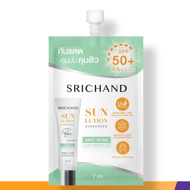 (1 ซอง) 2 สูตร SRICHAND กันแดดสกินแคร์ SPF 50+ PA++++ (ปริมาณ 7 ml.)