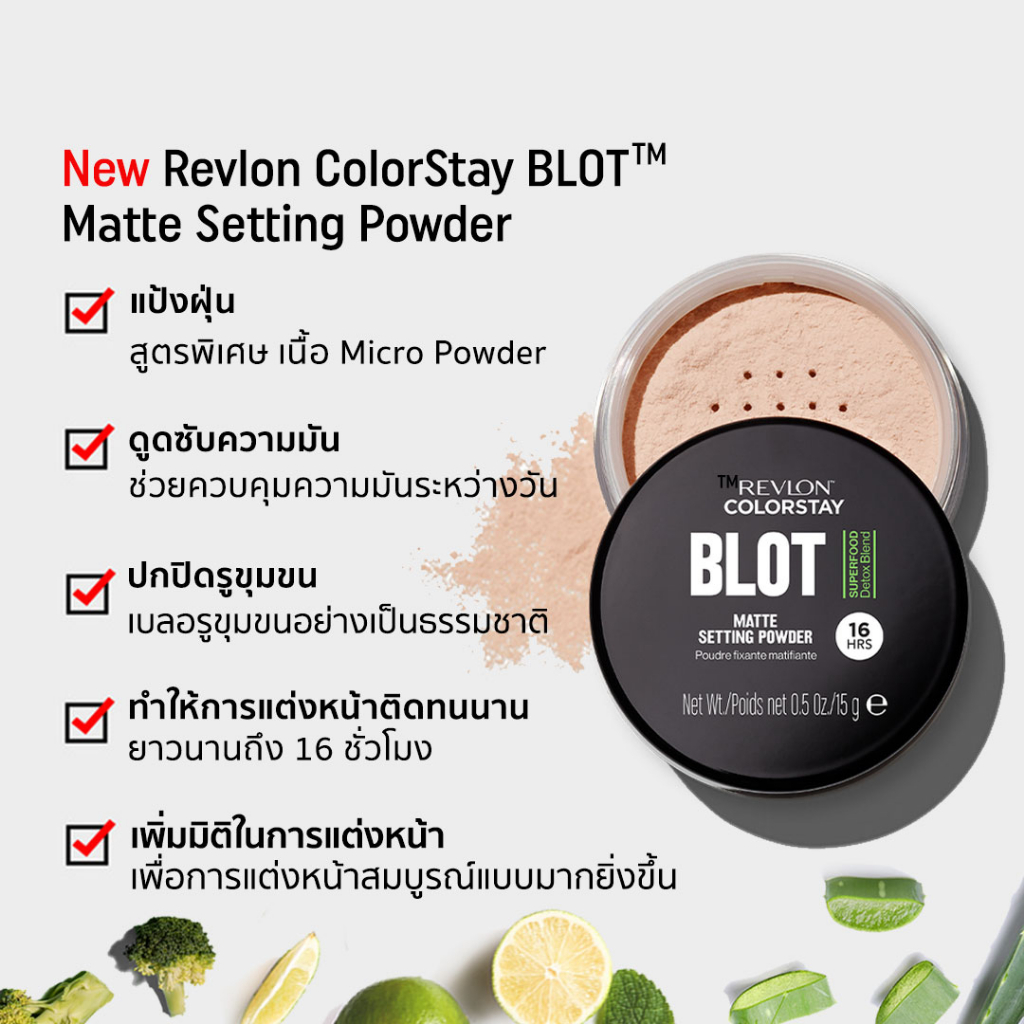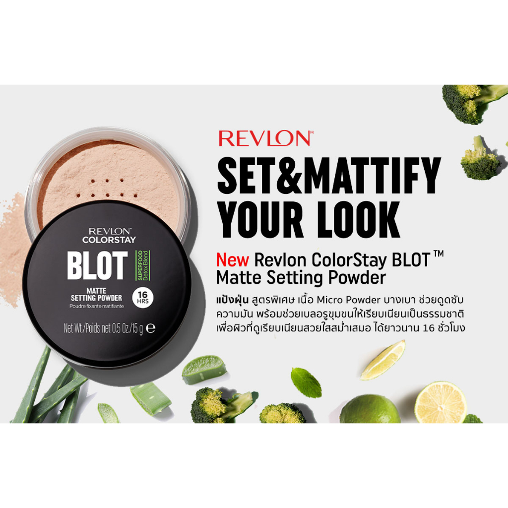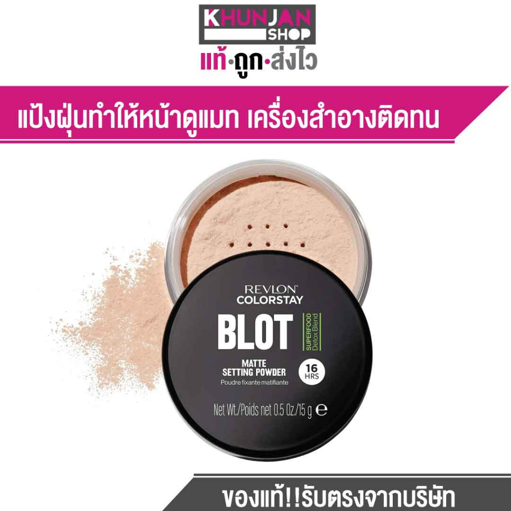 เรฟลอน แป้งฝุ่น คัลเลอร์สเตย์ บรอท เซ็ตติ้ง พาวเดอร์ 15ก. Revlon Colorstay Blot Setting Powder 15g. แป้งฝุ่นคุมมัน