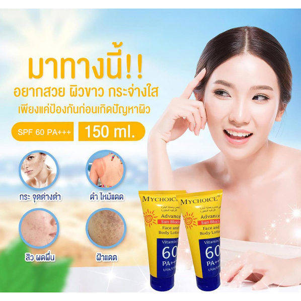 (150g) MYCHOICE มายช้อยส์ ครีมกันแดด สำหรับผิวหน้าและผิวกาย (หลอดเหลือง) [1900]