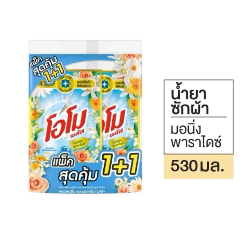 [แพ็คคู่] โอโมน้ำซักผ้ามอนิ่งพาราไดซ์ขาวเดิม 530ml.