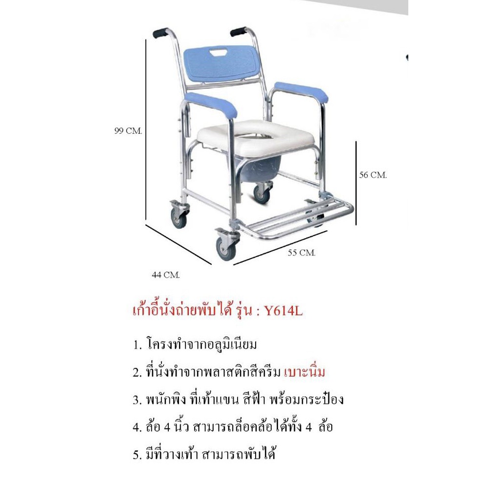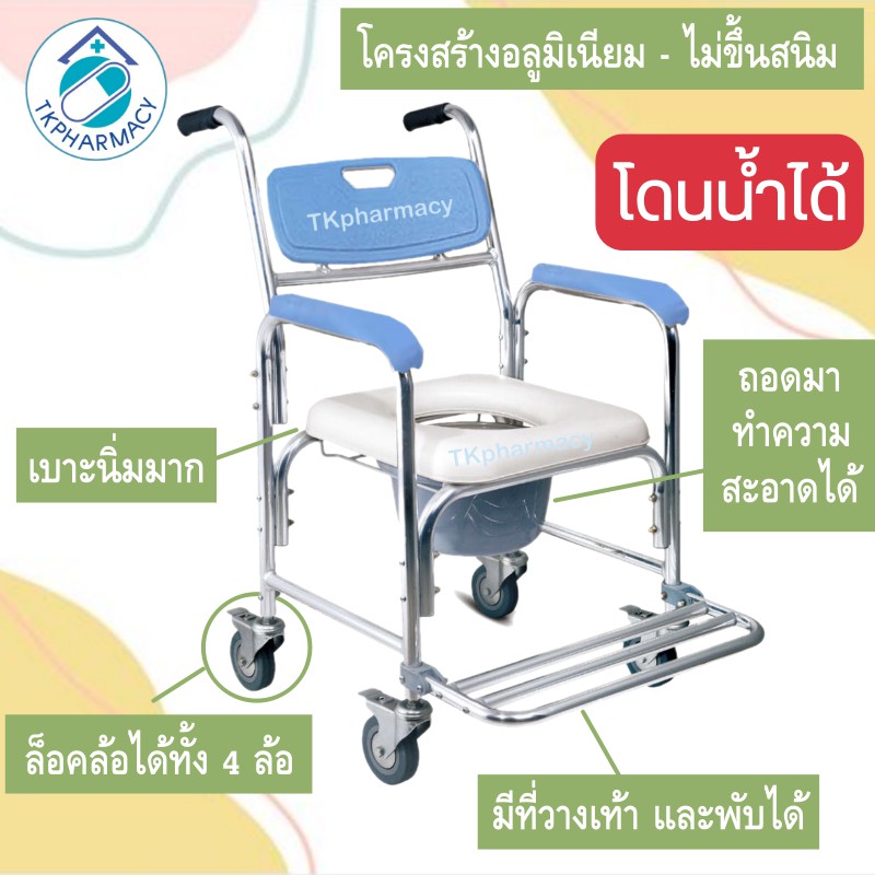 เก้าอี้นั่งถ่าย เก้าอี้นั่งถ่ายผู้สูงอายุ รุ่นอลูมิเนียม / มีที่วางเท้า ***ประกอบเอง***
