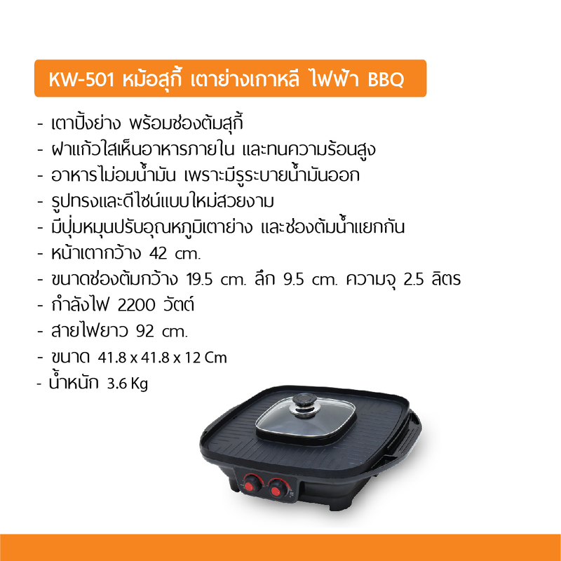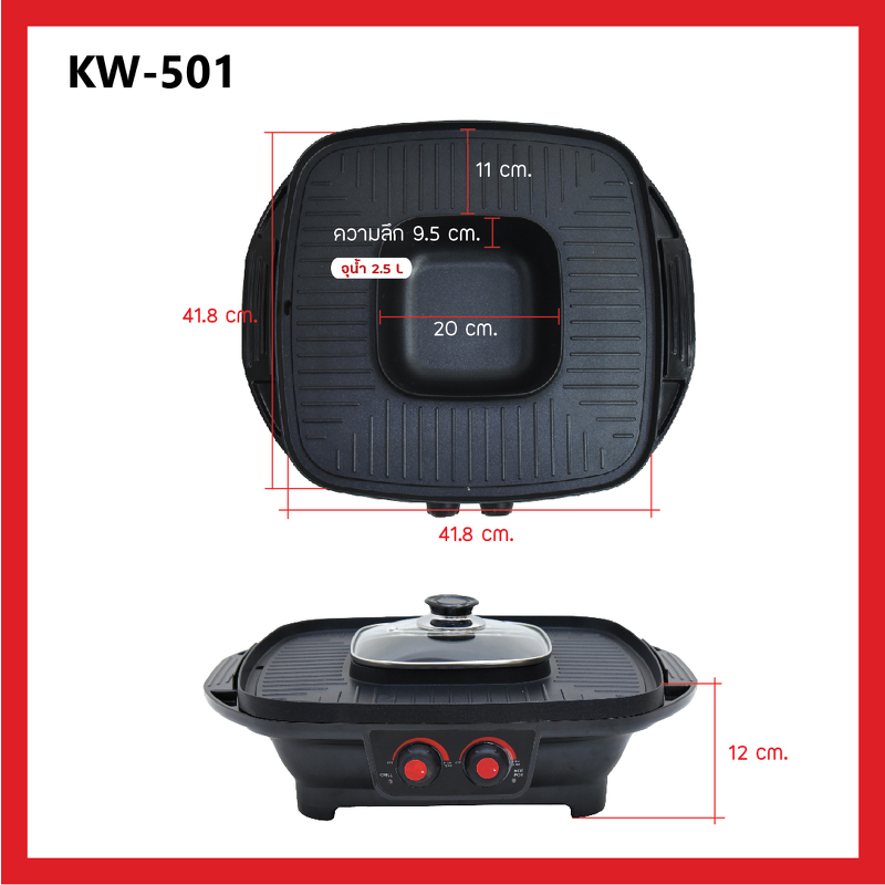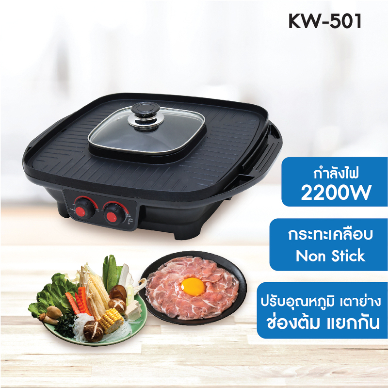 เตาปิ้งย่างหม้อสุกี้ชาบู Oxygen รุ่น KW-501 (ขนาดใหญ่พิเศษ) 2,200 วัตต์