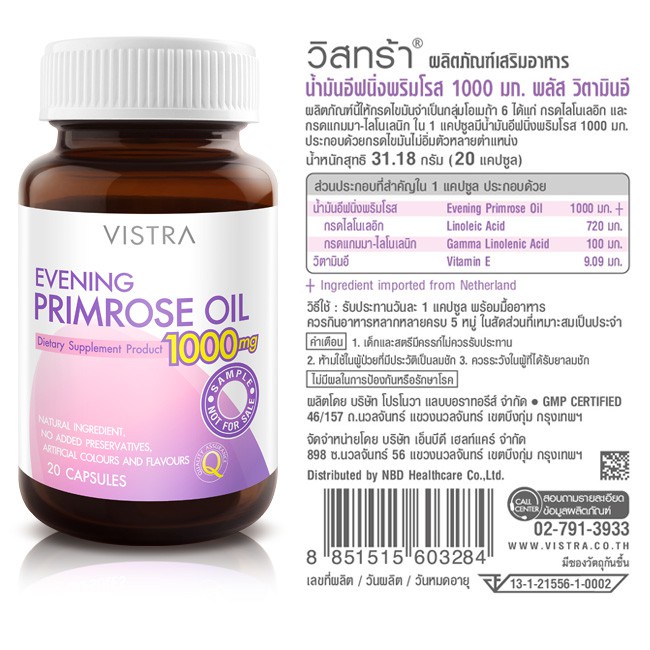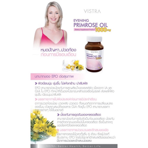 Vistra Evening Primrose Oil 1000mg. capsules วิสทร้า อีฟนิงพริมโรส ออยล์ 75 แคปซูล