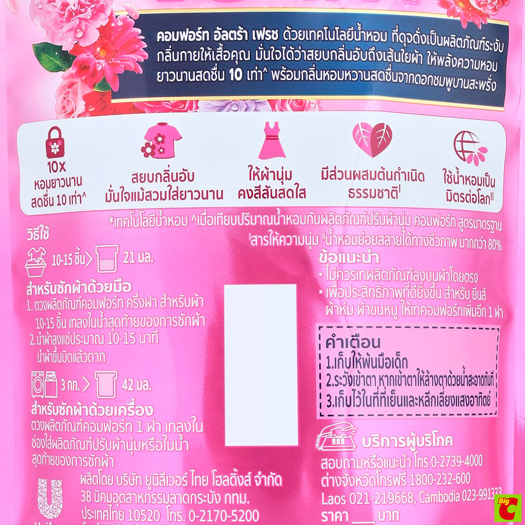 คอมฟอร์ท ฟลอรัล เฟรช ผลิตภัณฑ์ปรับผ้านุ่ม สูตรเข้มข้นพิเศษ อัลตร้า สีชมพู 470 มล. แพ็ค 2+1