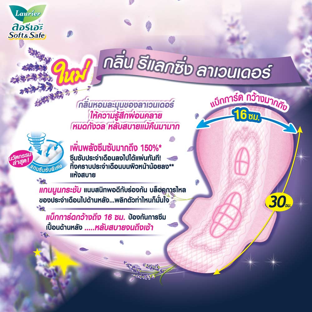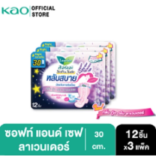 [แพ็ค3] ลอรีเอะ หลับสบาย กลิ่นกู๊ดดรีมลาเวนเดอร์ แบบกลางคืน 30ซม12ชิ้นแพ็ค LaurierSofe&SafeGood DreamLavenderScent