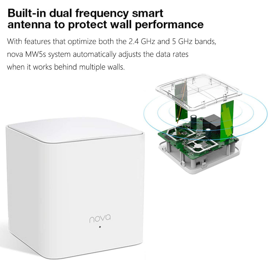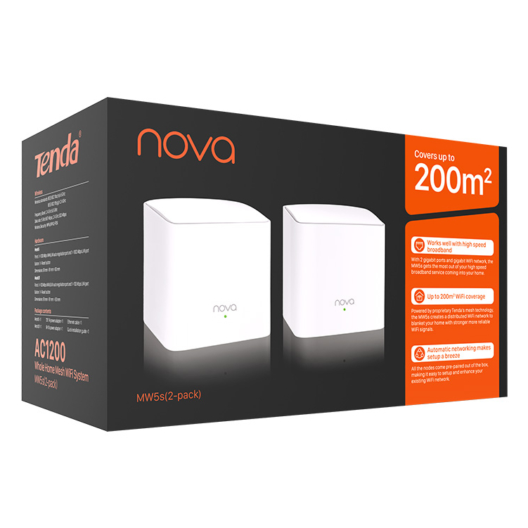 Tenda MW5s-2 Pack AC1200 Whole Home Mesh WiFi System Pack2 - 2.4GHz, 5.0GHz, 2-Port 10/100Mbps/Node ประกันศูนย์ 5 ปี