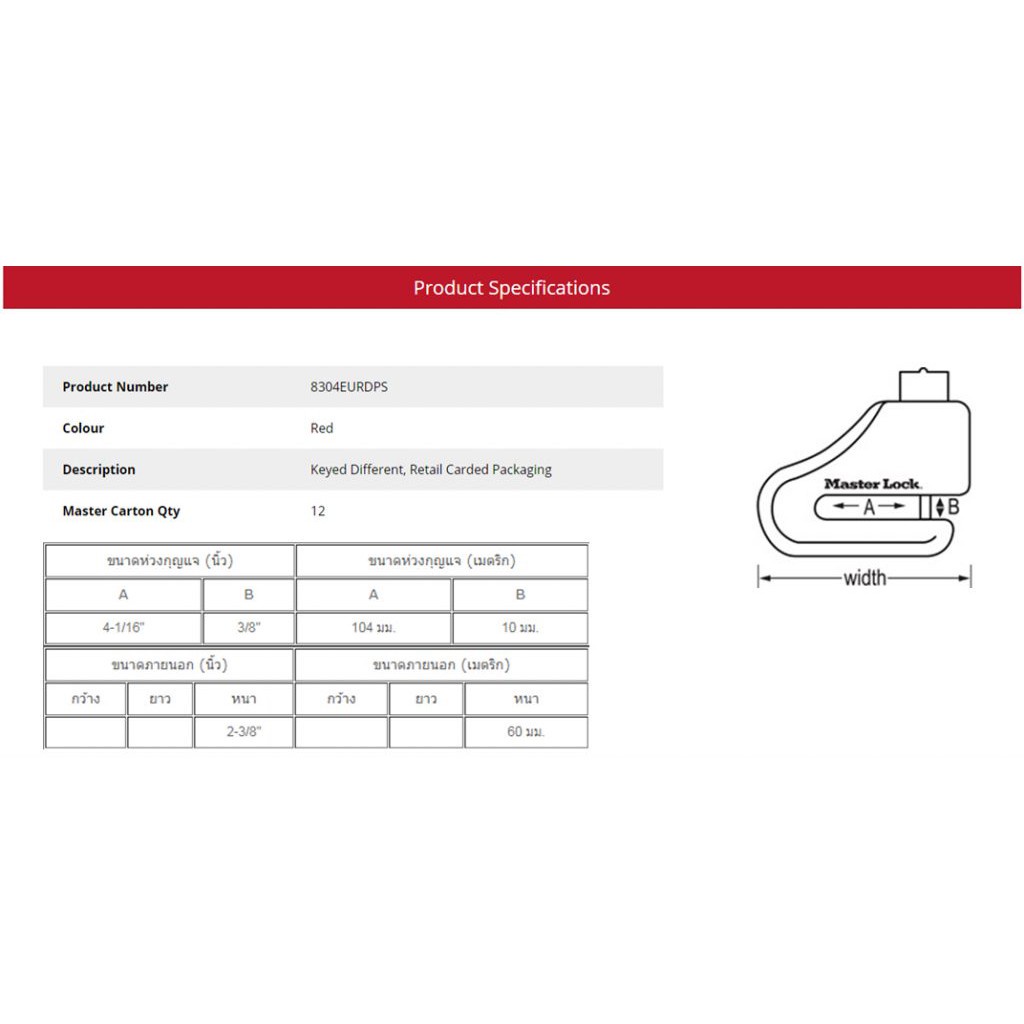 Master Lock มาสเตอร์ล็อค 8304EURDPS ตัวล็อคสำหรับดิสก์เบรค